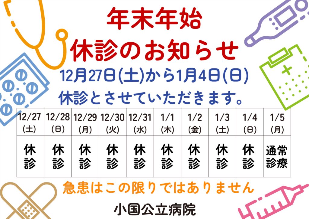 令和7年度(12/28 土~1/4 日)の年末年始休診のお知らせです